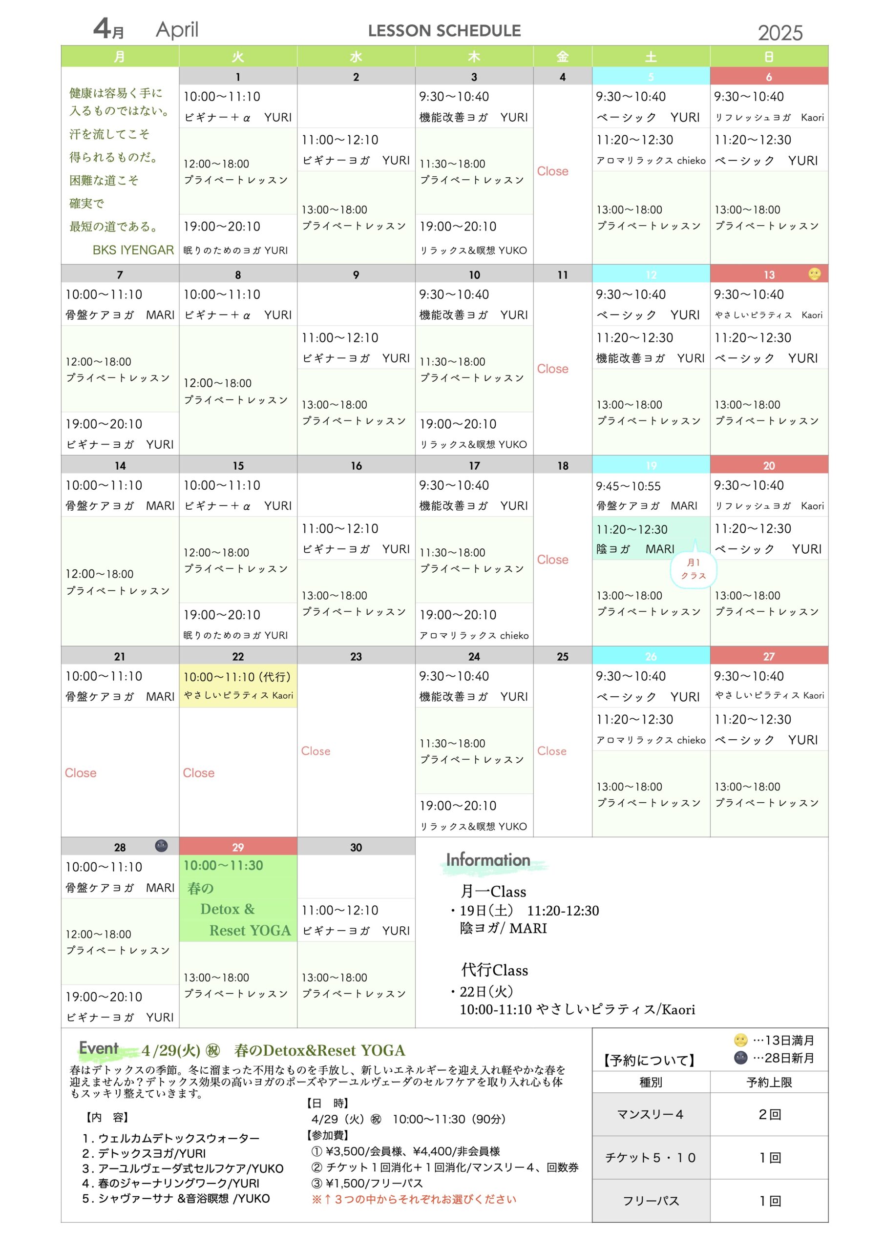 『春のDetox&Reset YOGA』で冬に溜まった老廃物を流し、内側からスッキリ整えるEVENTもお見逃しなく!!!