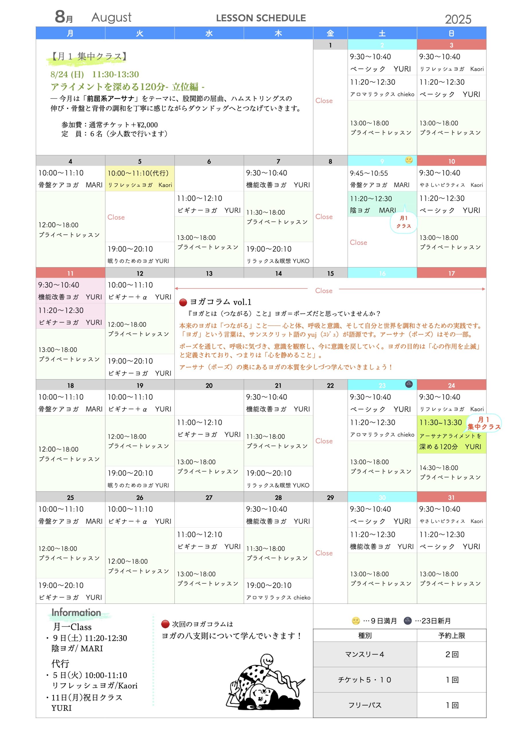 8月も、心と体を丁寧に整えるひとときをご一緒しましょう🕉️