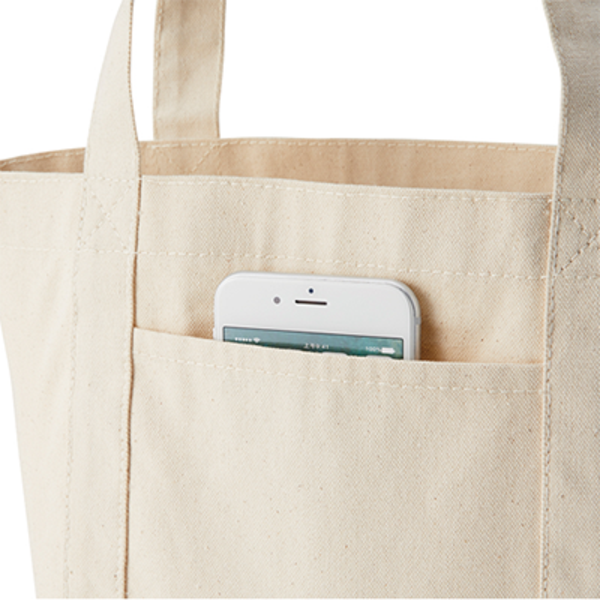 外側には、スマホなどの小物を入れるのに便利なポケット付き!