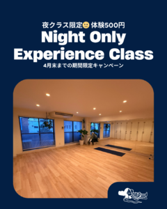 4月から始まる「夜のリセットヨガ」をはじめ、夜のクラスを対象にキャンペーンを実施します。