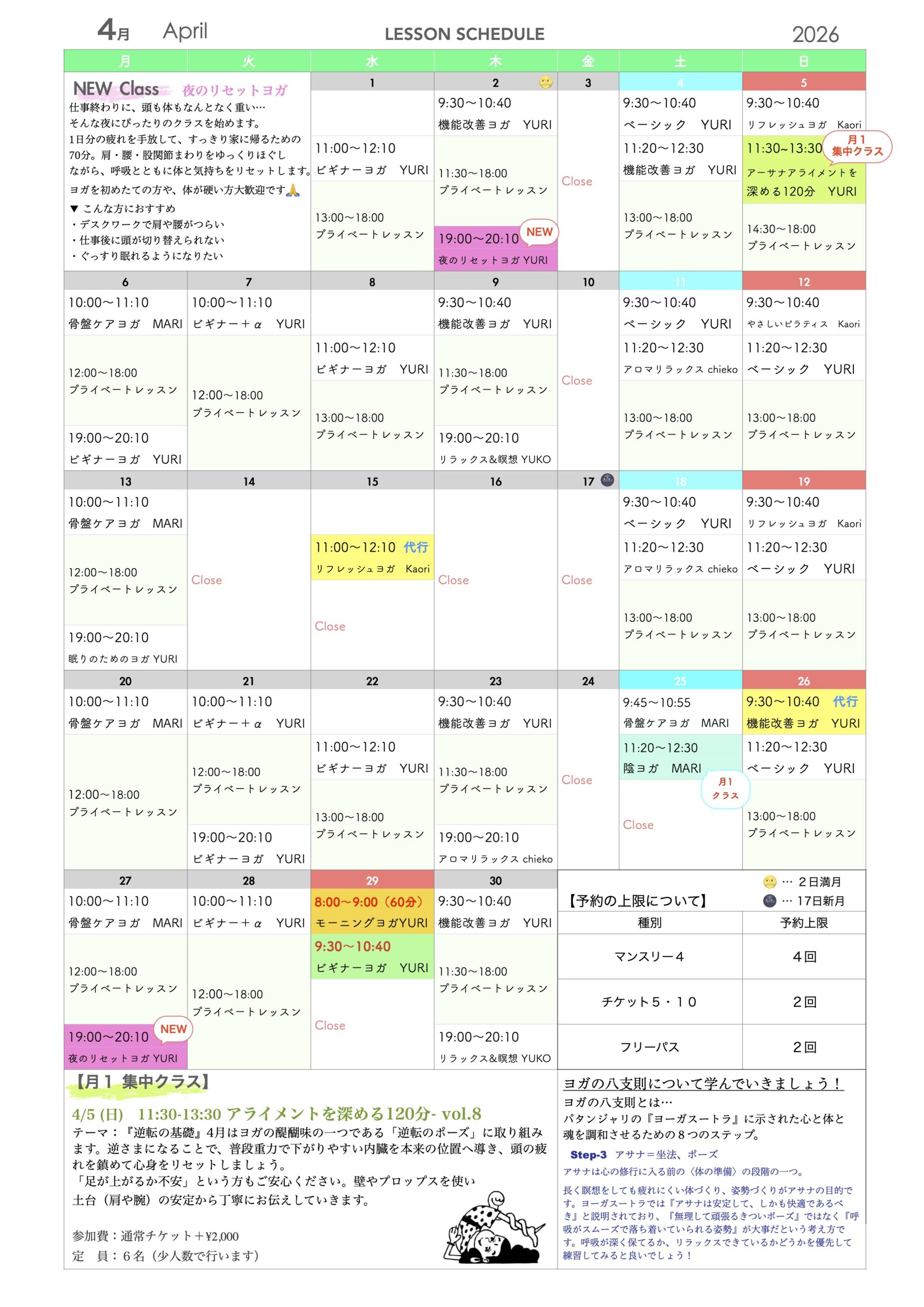 4月のヨガは、そんな「新しい視点」を見つける時期。