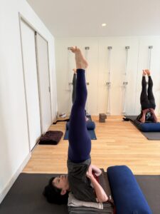 準備を整え、いよいよピークポーズのサーランバ・サルヴァーンガアサナ(肩立ちのポーズ)へ。