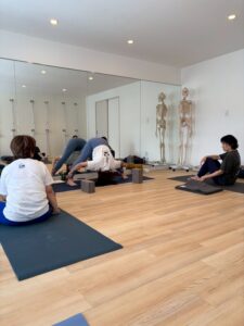 クラスの冒頭、私たちはまず「呼吸」と「足」に意識を向けました。